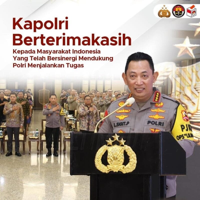 GNN.COM, JAKARTA – Kapolri, Jenderal Polisi Drs. Listyo Sigit Prabowo, M.Si., mengucapkan terima kasih dan memberikan apresiasi kepada jajaran Korps Bhayangkara yang